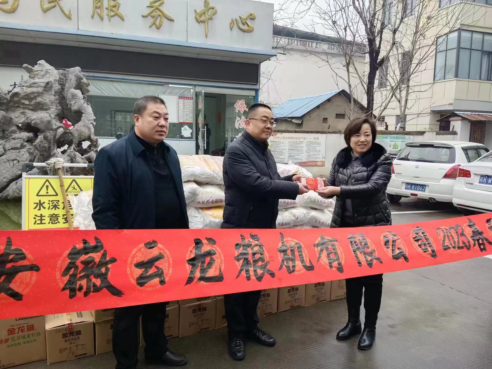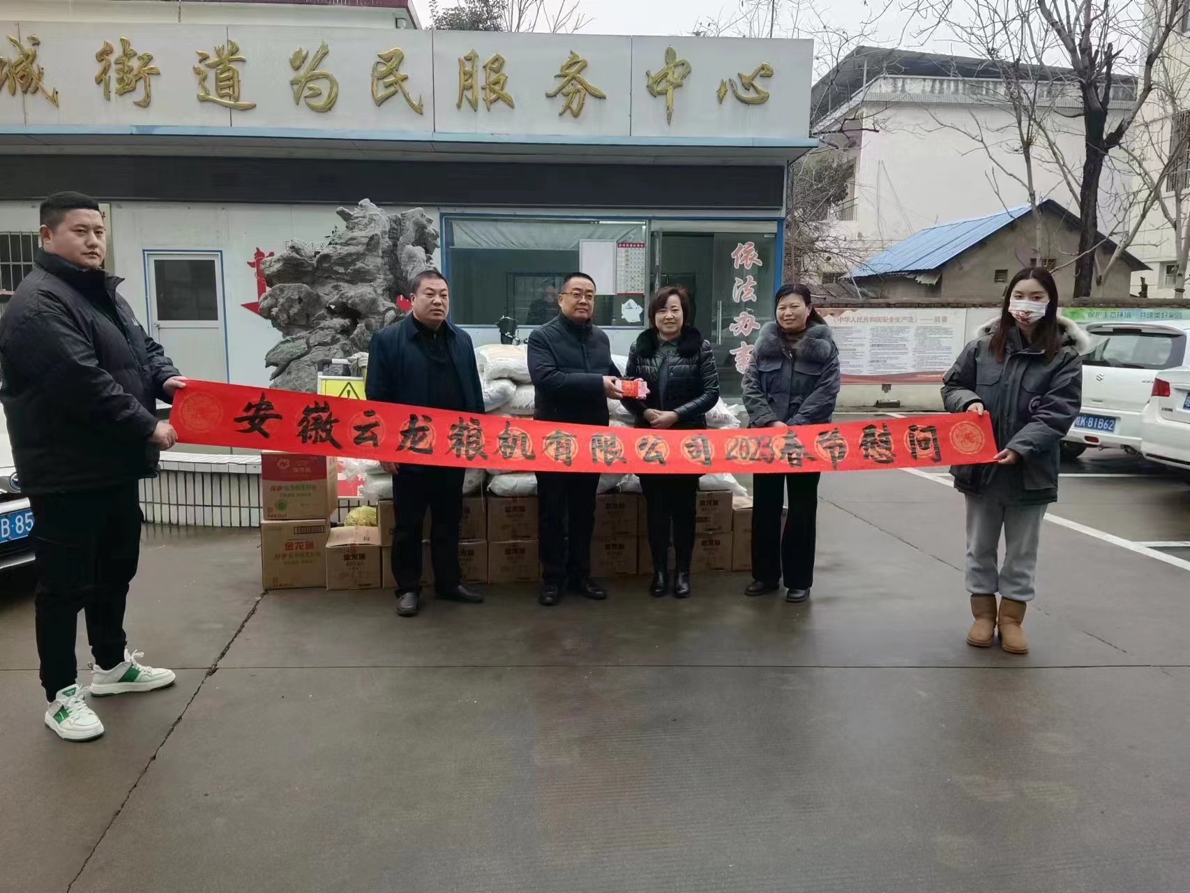 2023年春节将至,1月13日上午,安徽云龙粮机有限公司组织人员,来到界首市西城街道办事处为民服务中心,向西城的生活困难家庭送去春节慰问金10000元、食用油60桶、大米60袋、面粉60袋,真诚表达云龙粮机公司对贫困户的关爱,送去对他们的新春美好祝福。