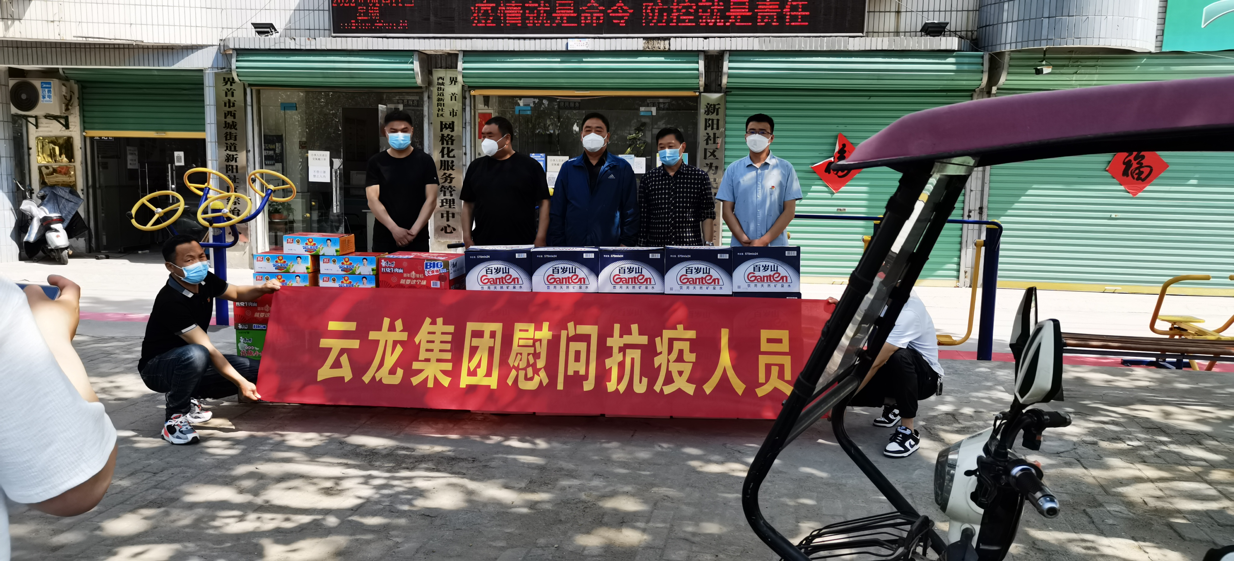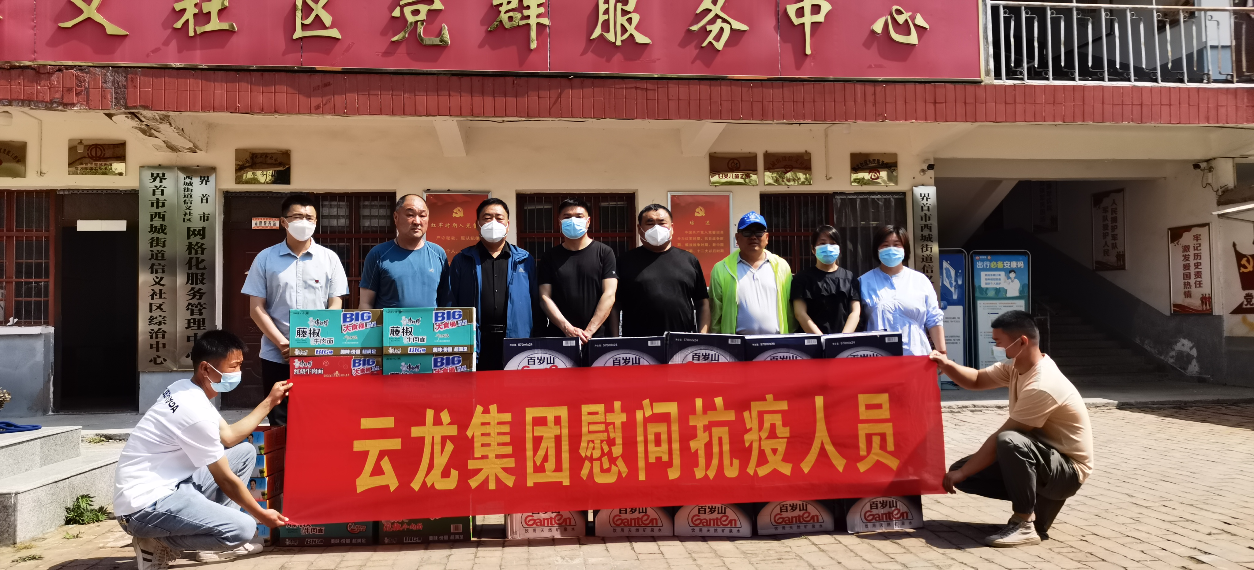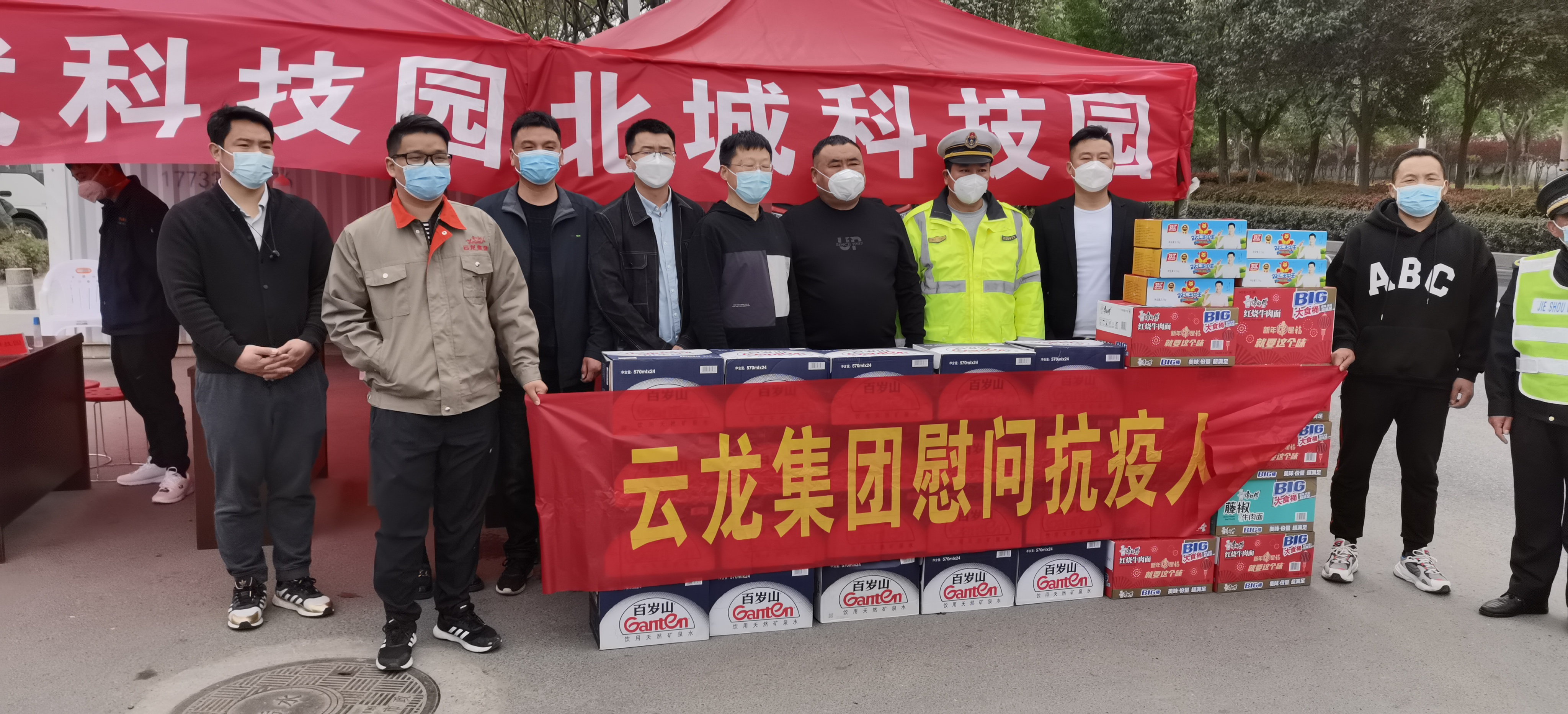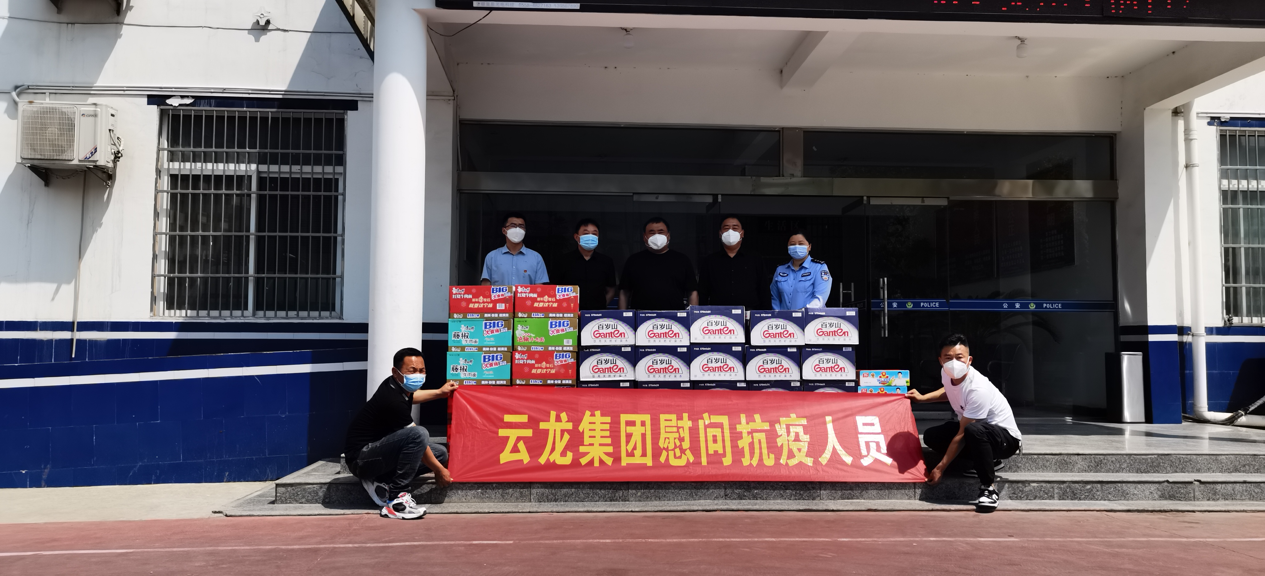 2022年4月11-12日安徽云龙粮机有限公司董事长曹鹏飞一行前往管委会、街道社区、派出所等慰问参与疫情防护的警民们,为他们送去了纯净水、方便面和火腿肠等物资。