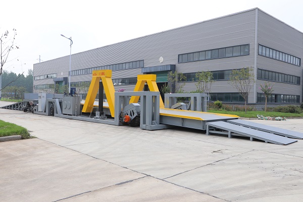 2、行走功能:当需要移动平台时,首先将料斗和两端引桥脱离,然后将承载轮升起,使平台离开地面,完全由驱动轮和转向轮支撑。操作遥控器前进或左右,即可以将平台移动到理想位置。全过程由遥控器操作完成。