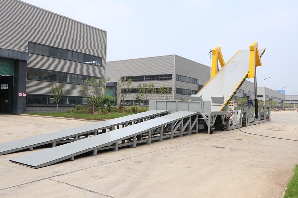 1、避免倒车:本液压后卸平台两端均设计有供车辆爬坡和下坡的引桥,保证车辆可以正常前进才式经过料斗后,驶入平台,完成卸车后,开启车辆从另一端行驶下坡。这种设计方式,既避免了车辆侧车的困难,又可以让重载车辆依次排队卸车。