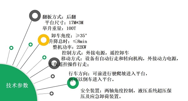 1、应用广泛:由于本机承载平台大,举升能力强,可以满足所有散装颗粒物料车辆的卸车需求。
