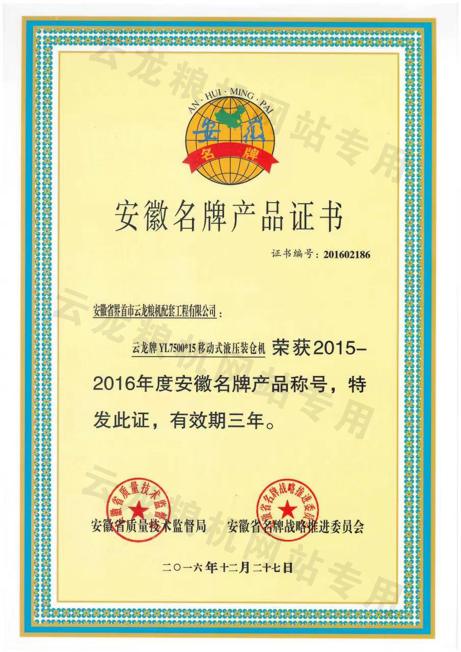 安徽名牌产品证书