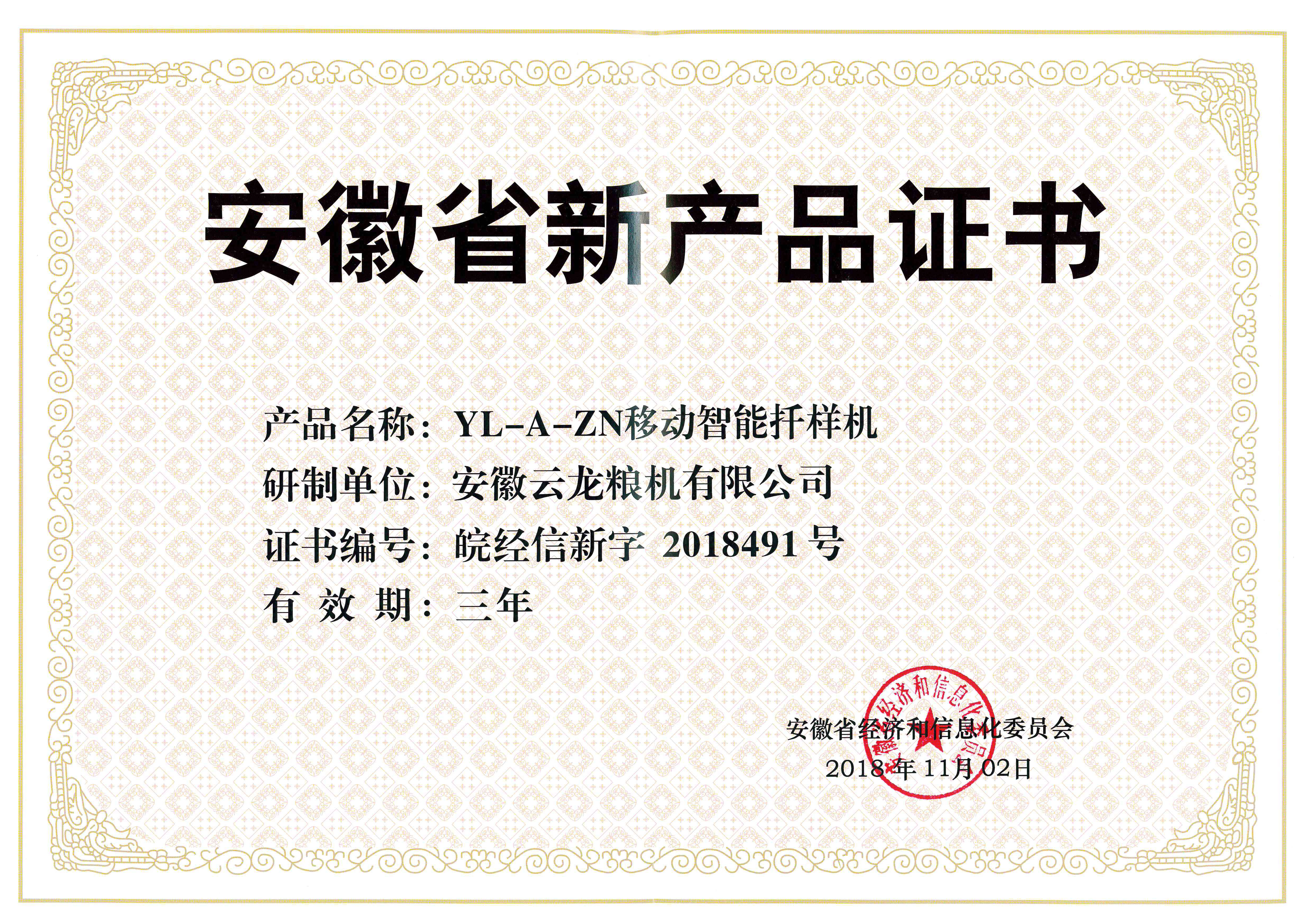 安徽省新产品证书